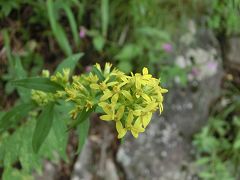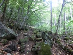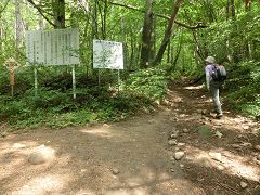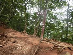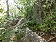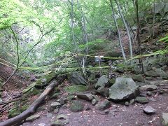 登山道脇に咲く花を見ながら超スローペースで歩いているので後から登って来る登山者に追い越されて振り向いても登山者の影も見えなくなり、逆に降って来る登山者と行き交う様になる。数年前から崩落に寄り女岩の50m手前から迂回路が出来ていて女岩を左下に見ながら急斜面の登りで通過する。