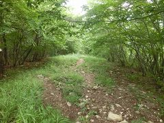 左丘の上の深田久弥記念公園を見ながら山道を進み林道との交差点(女岩コース登山口)に出る。前回は枯れ木の中、雪と霜柱を踏みながら登った道筋は今日は明るい緑の下で各所に咲く花を見ながら気持ちよく歩ける。