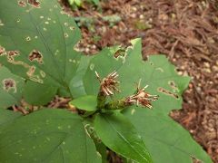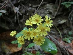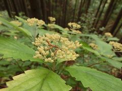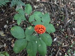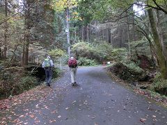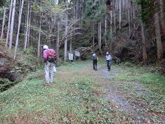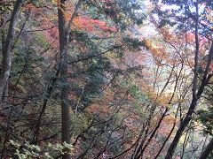 林道に降る所で再び倒木を潜り抜けて幾分明るくなった林道を降り五条の滝駐車場に戻る。今回のコースの大半が植林帯の中で展望もなく花類も少なかったが山頂付近で紅葉が見られる。