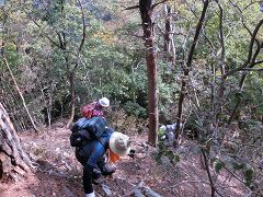 岳ノ山の急斜面を |