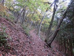 空は灰色の厚い雲で覆われていて陽の光は全くなく、紅葉、黄葉の輝きが無いのは少々残念だが秋色に染まった尾根筋を陣馬山目指す。