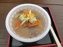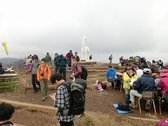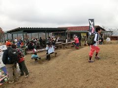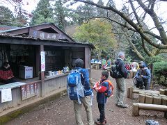 和田からの登山道と合流して急斜面を登り陣馬山山頂に出る。曇り空の天候にも係らず山頂は多くの登山者が来ている。早速、信玄茶屋特製のけんちん汁を注文。先客が多く整理札を貰って順番待ち。出来立ての暖かいけんちん汁は体も暖まりユズの香りも一段と美味しく頂ける。