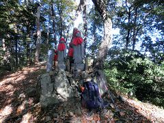 高尾駅から中央線に沿って小仏関所跡に向かい跨線橋で中央線を渡り道なりに行き中央道の下を潜ると八王子城址ハイキングコースの標識の有る登山口が有り。尾根筋の登山道を登り詰めた所にお地蔵さまが数体あるピーク