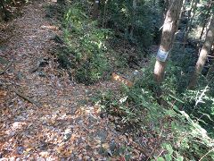 富士見台までは八王子城址の周遊コースで人気が有る様だ。富士見台からはKOさんと(南高尾で何度かお逢いしている方)板当峠まで行き滝沢林道を八王子城址方面に戻り松竹に降る林道を左に見送り林道の終点から左手の山道に入って八王子城址を目指す。