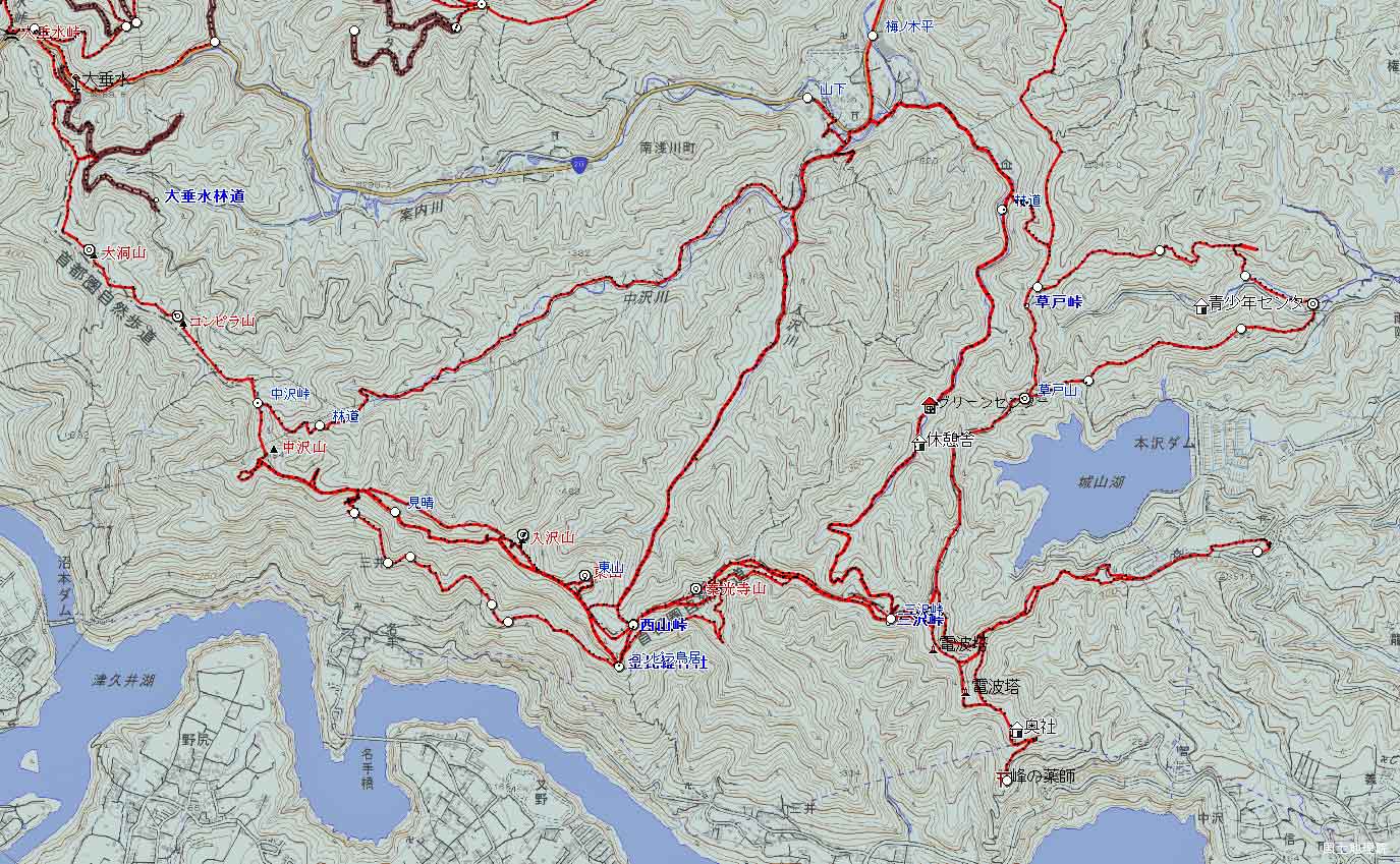 西山峠から200m降った所の変則十字路(金比羅の赤い鳥居)から未踏の巻路に入る。予想外に道は良く出来ていて所によっては小型車が通れる様な所もあり。