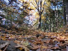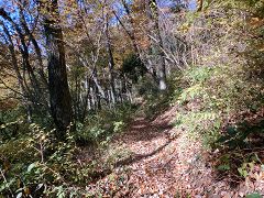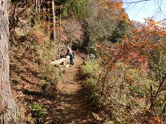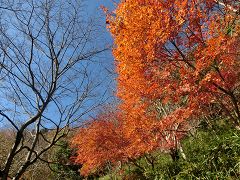 此処は周りのモミジが鮮やかに紅葉していて陽当たりも良くのんびりと昼寝でもしたくなる気分だが一足先に南高尾山稜縦走路に向けて登って行く。帰りはメインコース(縦走路)を戻る途中先週北高尾で同行させて頂いたKOさんほかにお逢いして駐車場まで戻る。