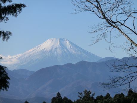 小仏城山、一丁平方面は誰もいない、一人で太陽光のあたる林の中を緩やかに登って行く。途中では降って来る方と10名ほど行き交う。天気は非常に良いが風が少し冷たいので南の斜面のこのコースの選択は正解だった。大平林道に出た所でIさんから既に現地に到着のメールあり。