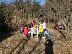 飲んで、食べて、話して..撤収の手際の良さに感心!!。数分で下山準備完了皆さんの手際よさに改めて感心させられる。帰りのコースは紅葉台の北側を巻いて5号路の南コースから稲荷山コースで清滝駅に降る。