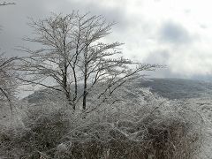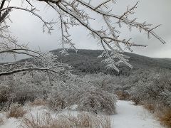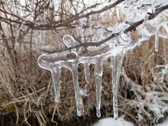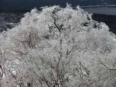 以下は氷の造形 雨氷=落葉樹の枝などに付いた水滴が凍る幻想的な現象