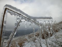 降る途中で富士山の写真を撮りに来た方としばし話しこむ。刻々と変化して行く空を眺め一瞬青空の奥から太陽光が射して雨氷が虹色に輝く瞬間を写真に収めたがコンデジでは表現が出来ず。パノラマ台まで戻りコーヒーを飲みながらしばらく天気の変化を見ていたが変わりがないので帰路を辿る。