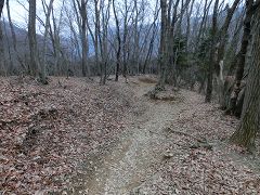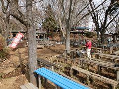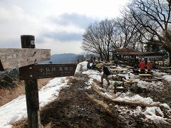 急斜面をジグザグにゆっくりと登り詰めて景信山の巻路との十字路に出て景信山山頂に上る。天候の悪い影響か何時もの土曜日より人影が少ない。雲が多く本日は富士山の展望は全く無し。