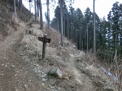 昼食(鍋会)跡は相模湖に降る方達を見送り往路を引き返す。景信山を巻路で通過してヤゴ沢の下りを過ぎて景信山東尾根をから小仏の登山口の降る。帰りに日影沢に寄ってハナネコの開花を見て来たが一株だけ蕾の中に赤いヤクが見える。(帰宅後山友からハナネコ一番花の情報を頂く)