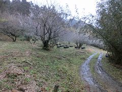 踏み跡の薄いルートを下る スイセン畑 |