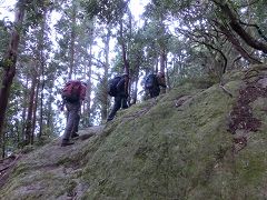 山頂直下の急斜面を登る |
