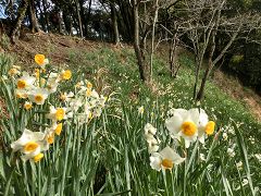 山の上にまでスイセン畑があり |