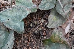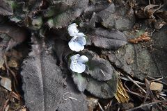 ザリクボ入口で休憩していると山花友の方々5名が来てしばし情報交換。景信山に向かう5名の方々を見送り小下沢林道歩きを続ける。オオイヌノフグリ、タネツケバナ、ユリワサビ、アオイスミレなどの花は見られたが逆沢林道に入ると標高と陽当たりの関係か花は全く見られない。