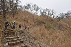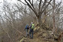 今回もYさんの御誘いにより植樹祭と登山の二つのイベントに参加できる。植樹祭の会場から程近い船石峠まで車で上り標高差250m程の登山行程で標高1273mの備前楯山山頂に登れる。標高が高い影響か新緑は未だ先のようで落ち葉を踏みながら登るコースは冬の山歩きの様だ。