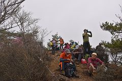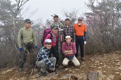 一時間ほどで山頂に付き一休みしていると大勢の登山者が登って来て狭い山頂は賑やかになる。皆さんも我々と同様に植樹祭に参加された方々で植樹祭と軽い登山を合わせて時間を有効に活用されている。