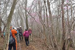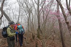 下山時も各所に咲くヤシオツツジに目を取られ立ち止まってはカメラに収めながら降る。登りで見た感じと異なったヤシオツツジが見られ二倍楽しめる。