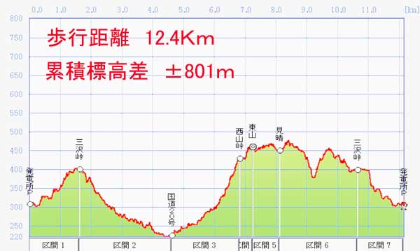 発電所P→三沢峠→国道20号→西山峠→見晴→西山峠→三沢峠→発電所P
