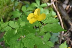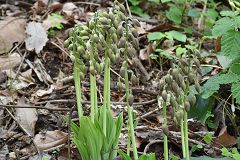 此方の山でも一部伐採され林道歩きが明るく気持ちが良い。西山峠直下ではニリンソウとヤマブキソウも満開で白色と黄色の共演が観られる。各所のエビネを未だ蕾を見ながらゆくとWさん他2名の方が休憩中、しばし情報交換後、見晴まで行き引き返す。