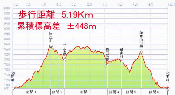 和田峠P→陣馬山→一ノ尾根→栃谷尾根→縦走路→陣馬山分岐→和田峠P