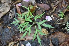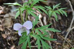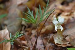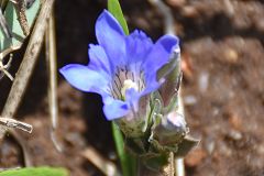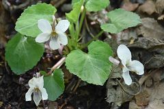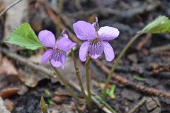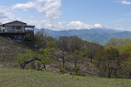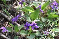 綺麗な青空だが富士山は雲の影で見られず。再び山頂付近を花探索。スミレ類はエイザン、ヒラツカ等は終わりでマルバやアケボノが見られる。一人で陣馬山に戻り信玄茶屋名物のけんちん汁と持参したおにぎり等で昼食にする。信玄茶屋さんから味噌おでん、竹の子の煮物なども頂き満腹になる。