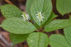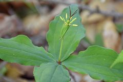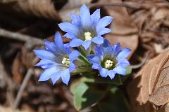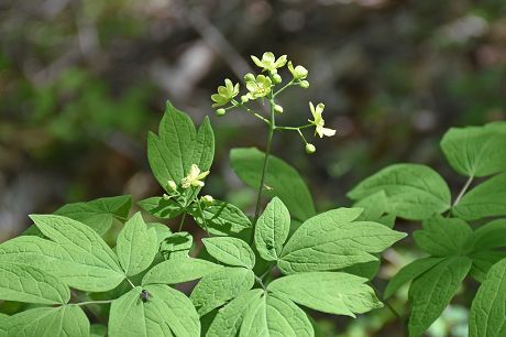 木の葉も成長して展望の妨げになっているが反面新緑は気持ちが良いので仕方がない。御前山はカタクリが多いが花は既に終わっていて実になっている。スミレ類も終盤で花数が少なく鋸岳ではフイリフモトスミレが多く見れれる。往路では蕾だったフデリンドウも陽が高くなった復路では花が開いていて各所で確認できる。ルイヨウボタンが丁度満見頃で多く見られる。