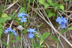 日影沢林道を先に降って行ったKさん達をバス停で追い越して小仏川遊歩道に入って行く。樹林帯の中は薄暗く人影もなく我々3名で各所に咲く花を見ながら高尾駅に戻る。(6:50)
