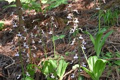 次の目的の花、ツレサギソウを見に行くと丁度見頃で撮影している所に山花友のIさんが来て花談義。此の後OさんとIさんの3人で次の目標の秘密の花園のエビネを見に行くと丁度見頃で薄いピンク色の花が見られる。