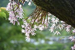 久しぶりに1号路から登り始める、ケーブルカー利用者は長蛇の列で1号路からも登る人が多い。登り始めた高い木の枝にはセッコクも僅かだが白い花が咲き出して入る。さらに登って行った所でイナモリソウを見たが残念!岩斜面の崩落で花は見られず。金毘羅台周りで山頂を目指す途中でイナモリソウが一株だけ咲いている。さらに此の後6号路でホシザキイナモリソウも一株咲いているのを見られる。