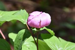 山花友から花の開花情報を頂き、早速花を見に目的地に向かう。大垂水から歩き始めると定期バスも到着して大勢の登山者と一緒になる。今日は少しコースを変えて登り途中で数か所でエビネが見られる。紅花ヤマシャクヤクは昨日開花したようで本日は未だ半開でこれから全開していくようだが他の花も見たいので次の目的地に向かう。