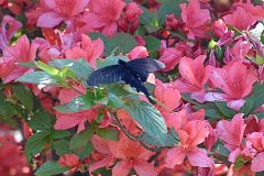 今日は何時もより少し早い時間に和田峠に到着し裏道から陣馬山山頂を目指す。何時もながら正規の登山道は山頂まで急な階段の連続で自然と足が巻路に向いてしまう。山頂に登ると先客が一人休憩していて先程まで富士山は見えていたとの事。此の後一時的に姿を現したが直ぐに雲の隠れてしまう。直射日光の当たる所は暑いので木陰で休憩後、付近の花探索。