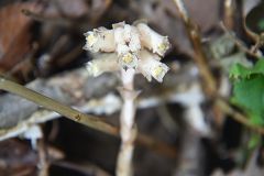 梅雨の合間に近くの山へ花を見に行く。此の時期は連日の雨で木や草もしっとりと濡れていて山道も泥濘もありスリップに注意しながら歩く事になる。腐生植物のツチアケビ、キバナショウキランは既に花の時期は過ぎていたが何とか見られる。林道の拡張工事と伐採で明るくなったのは良いが消え去る植物もあ有り。