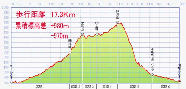 大下バス停→小下沢→関場峠→堂所山→明王峠→陣馬山→陣馬高原下→関場バス停