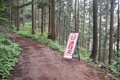 誰もいない富士見台しばしコーヒーブレイク。萩原作業道通行止め(事前情報を聴いていた)が確実なので手前の尾根筋から(最近3回ほど歩いている)日影沢林道に降り日影沢入口まで戻る。日影沢にある看板に記載では28年6月22日〜29年8月3日迄通行止め。期間が長く日影沢林道から一丁平への最短コースで私も含めて多くの登山者が利用するため注意が必要だ。