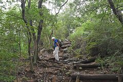 フラワートレインの通行する道路を横断して尾根筋を登り中岳で小休止。ベンチが有り休憩ポイントになっているが展望が無いのが残念だ。家族連れや単独でプラット登って来る方が多く手軽に山歩きが楽しめるコースが充実している。