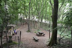 フラワートレインの通行する道路と交差して多くの登山道が有り迷いやすいが何れのコースも尾根筋に出る。尾根筋には各所に屋根の有る休憩舎が有り雨の時は助かる。尾根筋から三毳山最高峰の青竜ケ岳を往復して来る。山全体が自然林の様で明るく気持ちよく歩ける。
