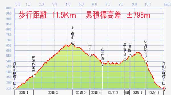 日影沢→小仏城山→一丁平→高尾山→日影沢