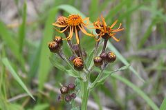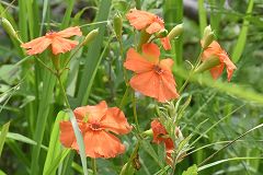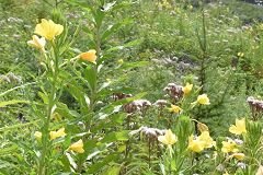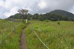 昨年よりも約一月早く訪れた事でお花畑の様相が異なり、コウリンカ、シモツケ、ルリトラノオ、ツリガネニンジン、ベンケイソウ、トンボソウ等が各所で見頃でハナイカリ、ウメバチソウ、マツムシソウ等は未だ固い蕾状態だ。天候は梅雨明け直後の不安定な状態で青空も見えるが雲が多く一時は霧に包まれ展望は無いが涼しいのは助かった。