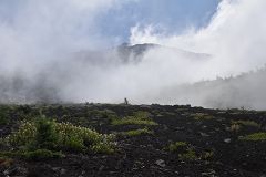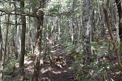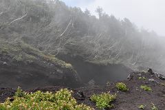 梅雨が明け各所で30度を超す猛暑から抜け出して気温18度の富士山の御庭へ。此処は標高2100mから2400mで樹林帯もあり貴重な植物も見られる。御庭Pから林道を歩き御中道にでて大沢崩れの途中まで行く。御中道、名前のとおり標高2300m辺りを平行に移動する鉢巻路で大沢崩れ手前約1000mの沢崩れで寸断されていて此処から引き返す。