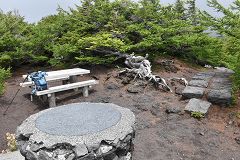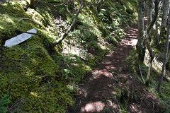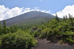 御中道の分岐点未だ戻りスバルライン終点の5合目方向に300m程の所に休憩舎が有り此処からは展望が良く富士山の山頂が良く見えるので昼食休憩にする。休憩舎近くには、御庭Pへ降る2本のルートが有るが今回は南側のルートを下り御庭Pに戻る。