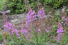 御庭Pから奥庭へ向かって降って行き奥庭荘まで降ると10名ほど一点にカメラを向けている。此処は野鳥の撮影ポイントとの事だ。奥庭荘前にはヤナギラン、ムラサキモメンズル、シャジン等が鮮やかに咲いている。此処から左回りで奥庭展望台を巡って来る。奥庭荘の所で御中道でも行き交ったK(高尾山付近で良くお逢いする方)さんとお逢いする。帰る途中北麓公園に30分ほど寄ってから帰路を辿る。