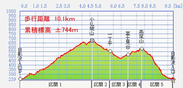 日影沢→小仏城山→一丁平→富士見台→→高尾山→日影沢
