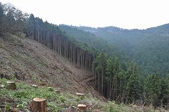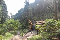 連日の雨で轟音を響かせて流れている日影沢に沿って日影沢林道を小仏城山まで登る。天気は曇りだが少し薄日が射して少し青空も見える。一丁平への近道、萩原作業道は重機が入って木材を運び出している。小仏城山に登って解った事だが今回は間伐ではなく全て伐採されていて禿山になっている。帰りに一丁平の伐採地に寄って伐採現地を見てくる。
