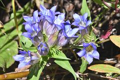 鳥居地峠から悪路の林道を登りゲートまで来ると車が両脇に2台駐車してるので旋回が出来ずゲート(何時も開いている)を通過して展望の良い所に今回は駐車する。今回も左回りで各所に咲く花を探しながら高座山山頂へ行き昼食にする。目的のムラサキセンブリは各所で丁度見頃。ほかにヤマラッキョウ、リンドウ等も各所で見られる。春、夏に比べると花の種類は少ないが秋の花を十分楽しめる。