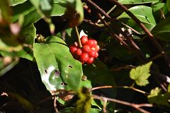 食後はWAさんの案内で道なき斜面を下り南天の群生する所やエビネの群生する所を案内して頂く。花の時期に再度見に来たい所だ。帰りの三沢峠では総勢10名となり最短コースで駐車場に戻る。