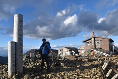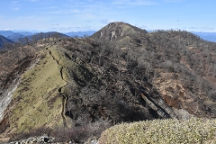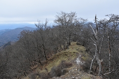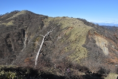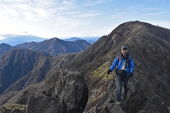 棚沢ノ頭を越えて鬼が岩の頭で小休止(時間調整)蛭が岳山荘泊りなので時間の余裕が有り。鬼が岩で数年前の雪景色を思い出しながら展望を楽しむ。急斜面の岩場をゆっくりと下り本日最後の蛭が岳への150m程の登りに取り掛かる。一歩一歩踏締めて丹沢山塊の最高峰標高1673mの蛭が岳に登り付く。昨夜は少々飲み過ぎたので本日は自炊室でコーヒーを飲みながらの小宴会。