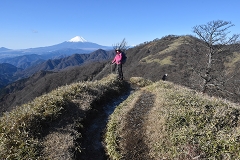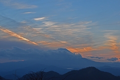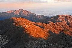 12月24日 今日も快晴で素晴らしい日の出が見られる。軽く朝食を済ませて小屋の外で昨夜の宴会の友に見送られて蛭が岳をを目指す。塔ノ岳から蛭が岳までの丹沢主脈は歩きは展望が抜群に良く富士山は見放題。