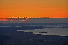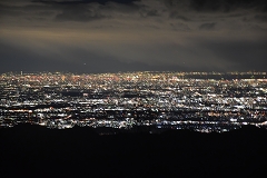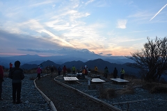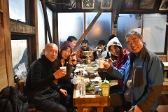夕食(宴会)をしながら時折りカメラを持って外に出て暮れゆく山並や街の灯火(夜景)を撮影して来ると体が冷えるので暖かい鍋とアルコールは格別の美味しさが有る。同行のFさんと一年越しの再会した。K、IさんにNさんとTさんが加わり話が弾み、小屋のご主人にもう消灯時間だよと追い立てられて寝床に入る。
